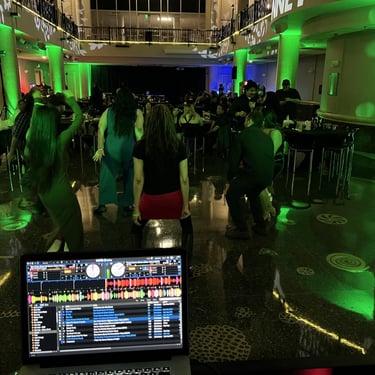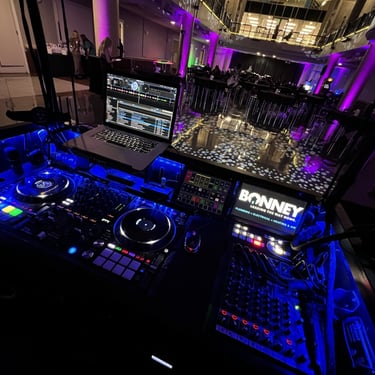 55" TV on front of DJ Console, We play Music Videos during dancing